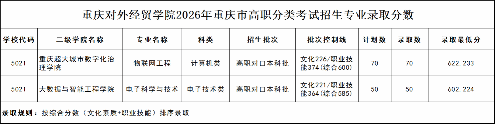 附:重庆对外经贸学院2026年重庆市高职分类考试招生专业录取分数