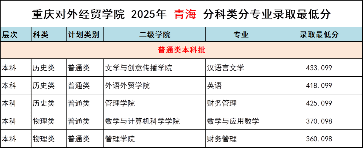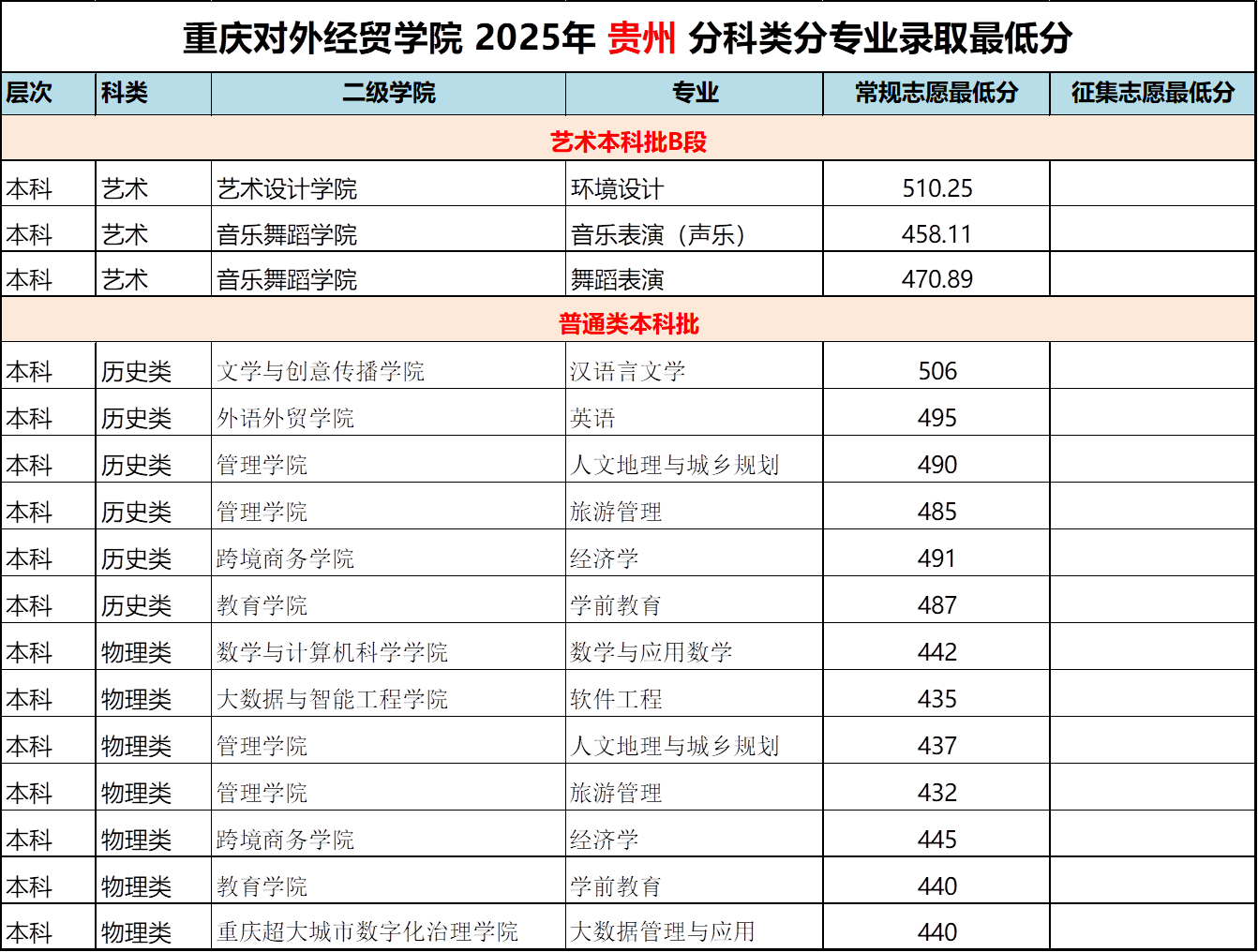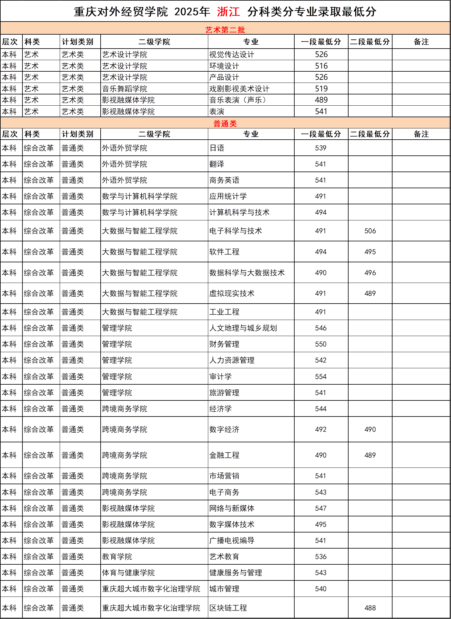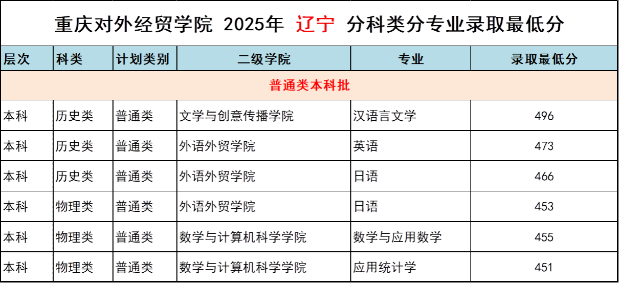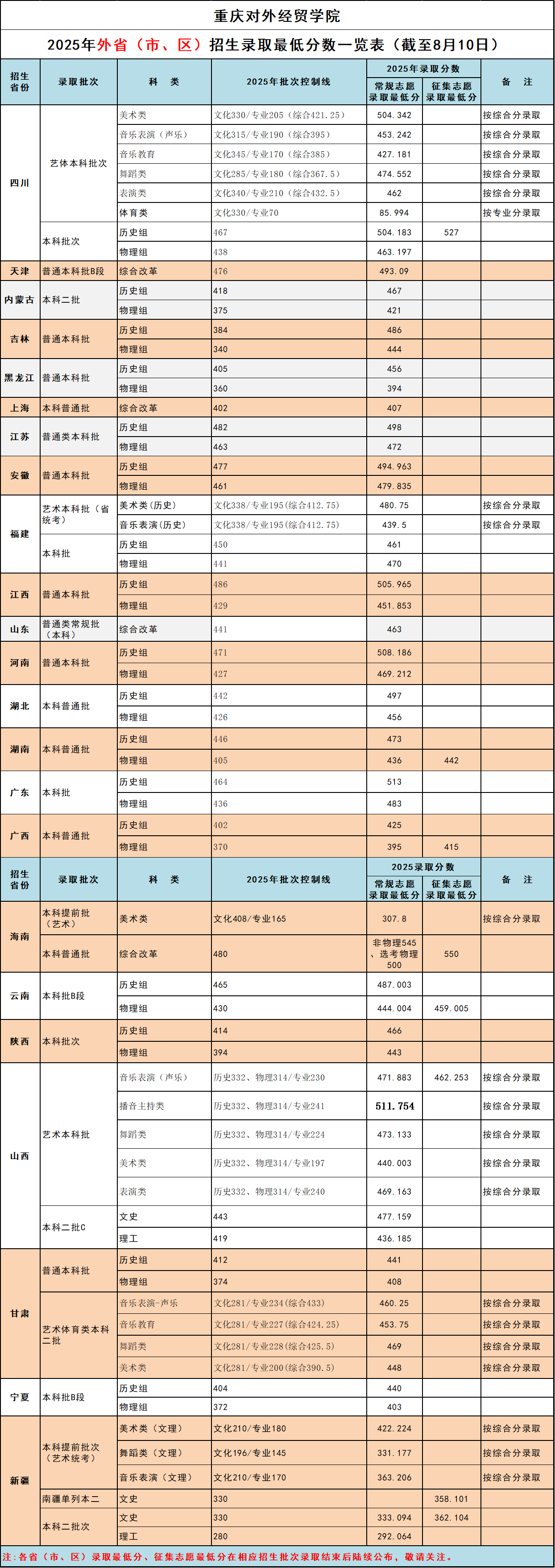 重庆对外经贸学院2025年外省(市、区)录取最低分