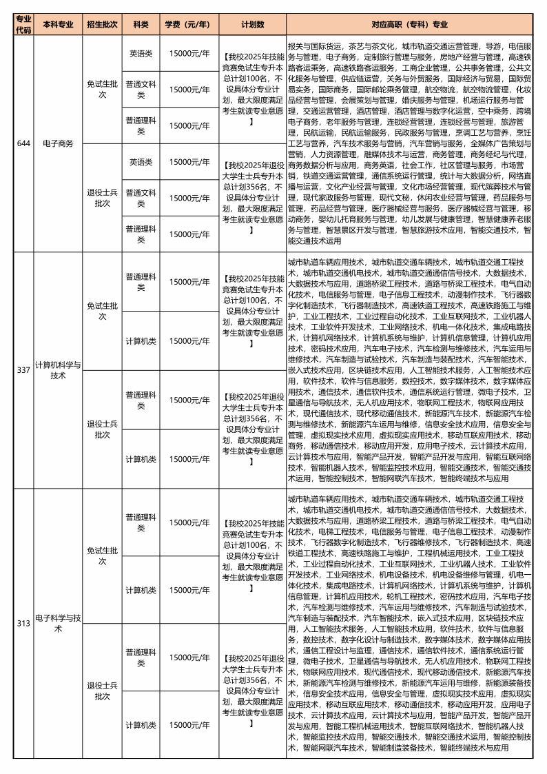 退役大学生士兵招生计划 356人、技能竞赛免试生招生计划100人,最大限度满足考生专业对应及就读专业意愿,欢迎报考!